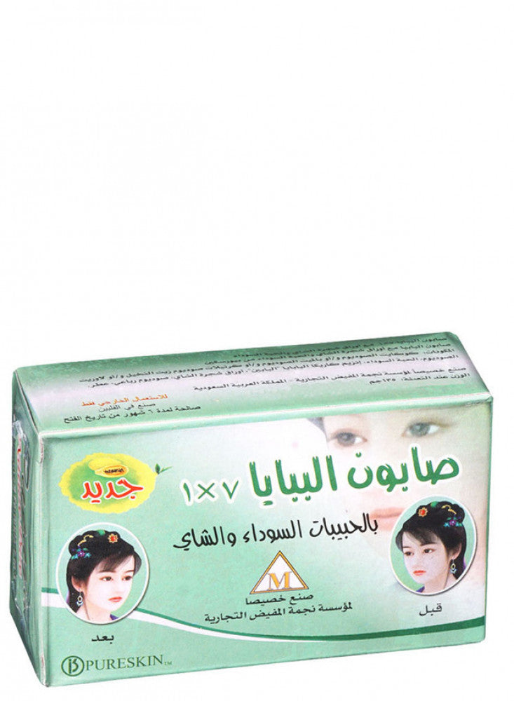 صابون تفتيح عشبي مع مستخلصات حبة البركة وشجرة الشاي وفاكهة البابايا.