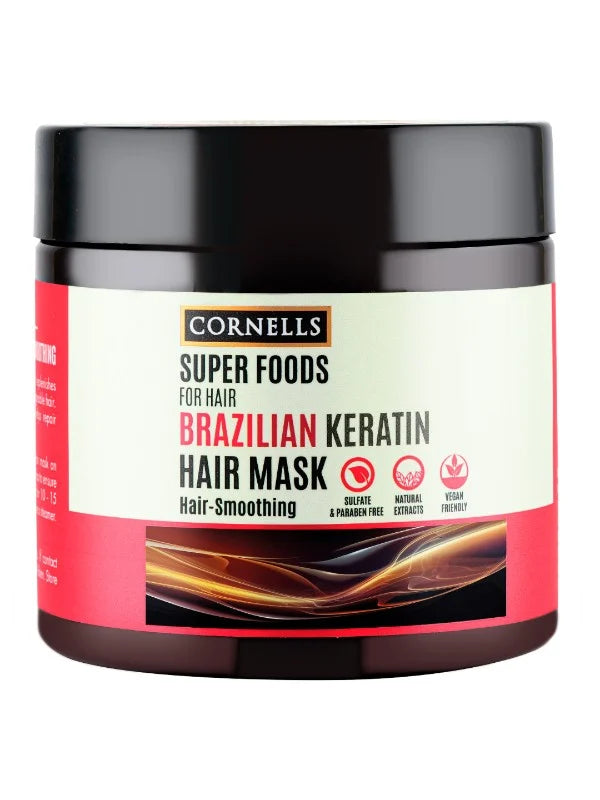 قناع الشعر كورنيلز سوبر فودز بمستخلص الكيراتين البرازيلي ٤٧٥ مل. يجمع هذا العلاج الاحترافي للشعر بين الكيراتين البرازيلي وخلاصات نباتية فائقة الجودة لاستعادة الشعر بشكل شامل. تركيبة ٤٧٥ مل تستهدف التلف البنيوي، حيث تعمل على تنعيم طبقة البشرة، بينما تعيد الرطوبة والبروتين إلى خصلات الشعر المتضررة. يعزز الكيراتين مصفوفة البروتين الطبيعية للشعر، مما يقلل من التكسر وتقصف الأطراف، بينما توفر مستخلصات سوبر فودز حماية مضادة للأكسدة ولمعانًا معززًا. مثالي للشعر المعالج كيميائيًا، أو التالف بسبب الحرارة، أو الخشن بطبيعته والذي يحتاج إلى إصلاح مكثف. ضعيه على شعر نظيف ورطب من منتصف الطول إلى الأطراف، واتركيه من ١٠ إلى ١٥ دقيقة لاختراق مثالي، ثم اشطفيه. تتضمن النتائج ملمسًا أفضل، وتقليلًا للتجعد، واستعادة المرونة مع كل استخدام.