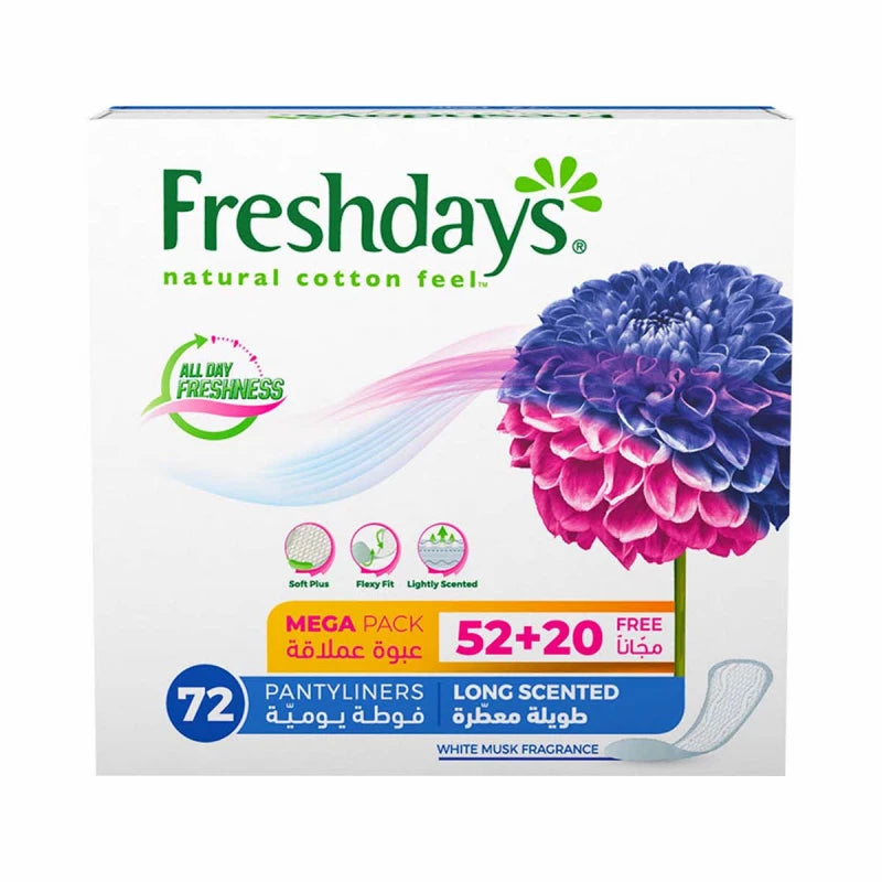 فوط فريش دايز اليومية المريحة توفر حماية موثوقة لانتعاش يومي. هذه العبوة الكبيرة، المكونة من 72 قطعة، تقدم قيمة استثنائية مع فوط مغلفة بشكل فردي مصممة لارتداء مريح وسري. تركيبتها المعطرة تمنحكِ رائحة عطرية رقيقة تمنحكِ شعورًا بالثقة طوال اليوم. تصميمها الناعم والمرن يضمن ملاءمة محكمة دون تهيج، مما يجعلها إضافة أساسية لروتين نظافتك اليومية. احصلي على هذه العبوة الكبيرة المريحة لحماية دائمة يمكنكِ الوثوق بها.