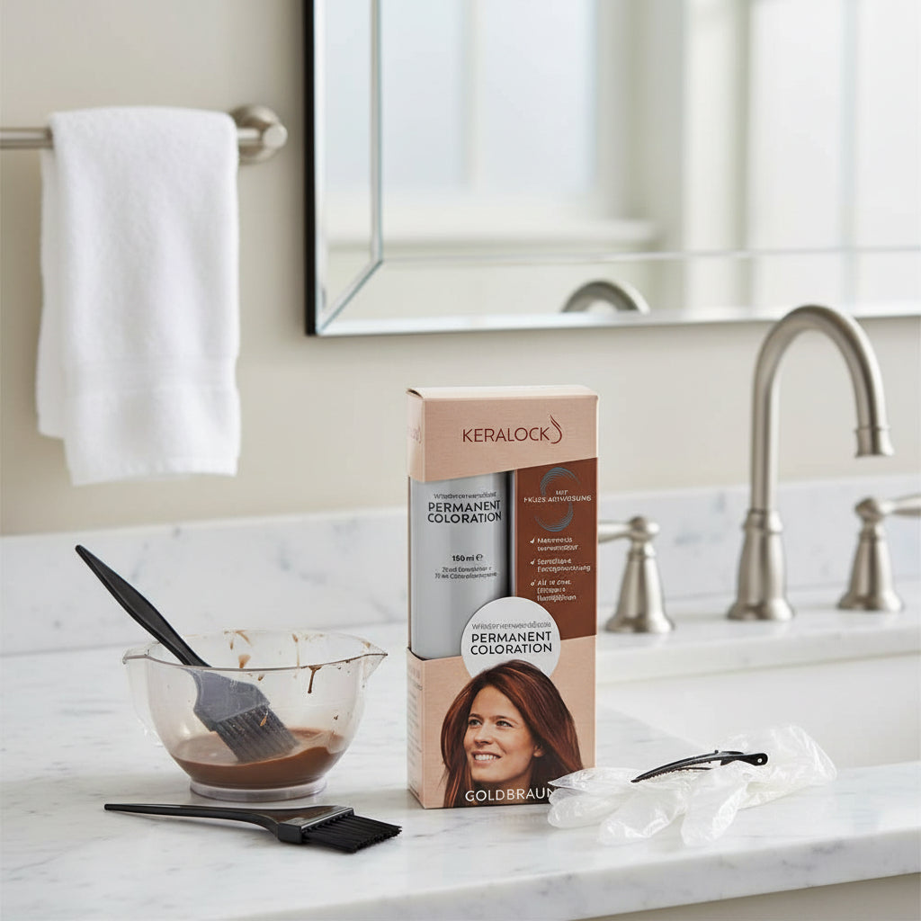 يُساعد لون الشعر الدائم من كيرالوك، الغني بمكونات مُرطبة، على حماية الشعر أثناء التلوين، والحفاظ على نعومته وسهولة تصفيفه بعد الاستخدام. يُضفي اللون البني الذهبي لمسة دافئة وأنيقة تُبرز جمال الشعر الطبيعي، ويناسب مجموعة واسعة من ألوان البشرة.