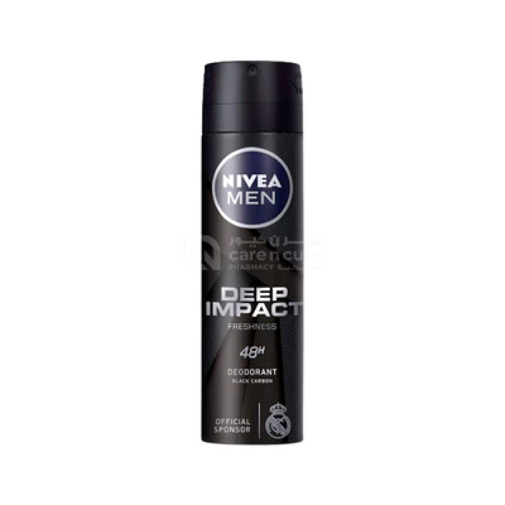 ودّعي روائح العرق الكريهة مع بخاخ مزيل العرق نيفيا ديب دراي آند كلين. مزيل عرق مثالي غني بالكربون المنشط، يمنحكِ حماية تدوم 48 ساعة من العرق مع شعور دائم بالانتعاش والجفاف.