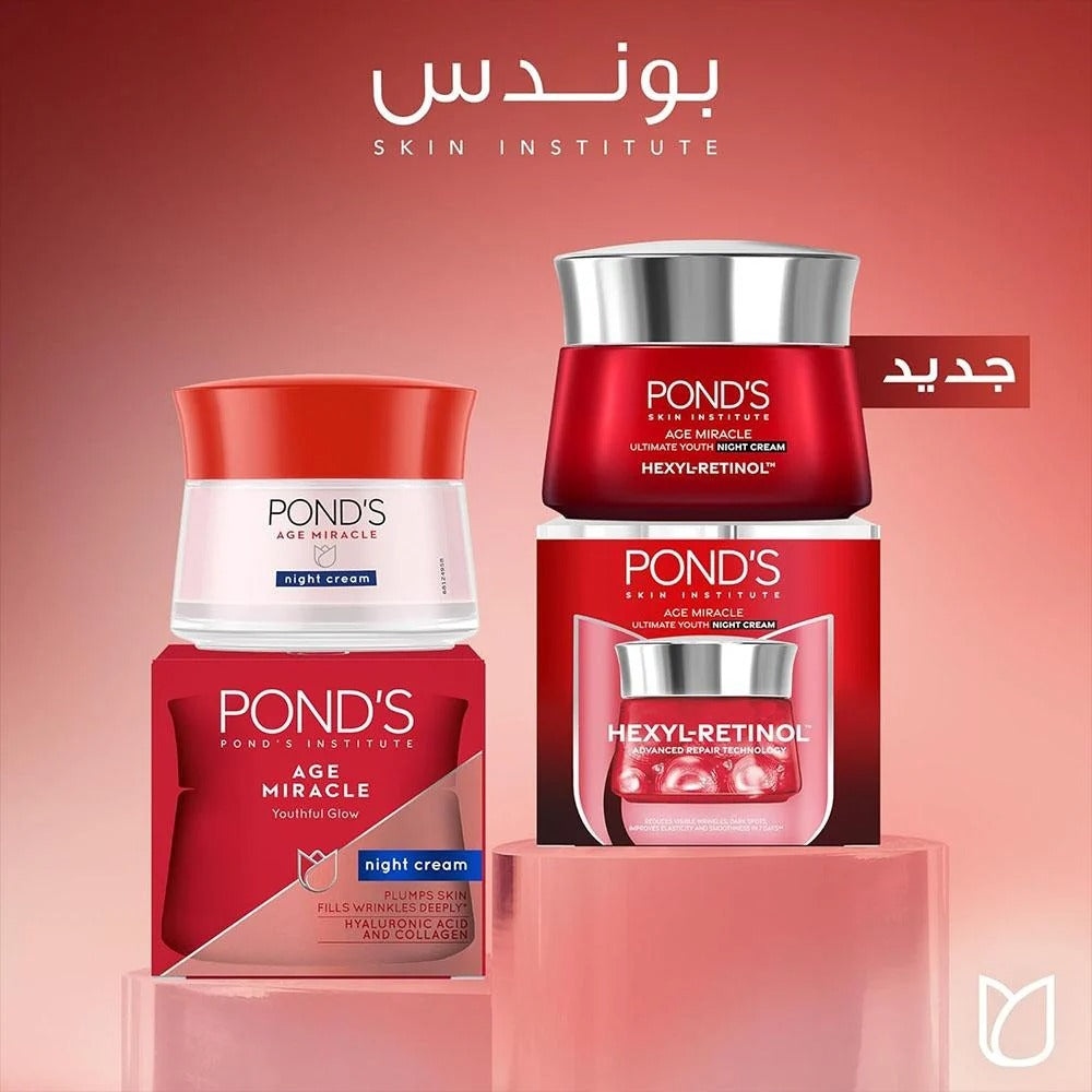 يحتوي كريم Pond's Age Miracle Night Cream الجديد على أحدث تكنولوجيا مكافحة الشيخوخة، وهي مركب Retinol-C، الذي يطلق باستمرار مكونات ريتينويد قوية مضادة للشيخوخة تعمل على مدار 24 ساعة دون توقف للمساعدة في تقليل التجاعيد للحصول على توهج شبابي.