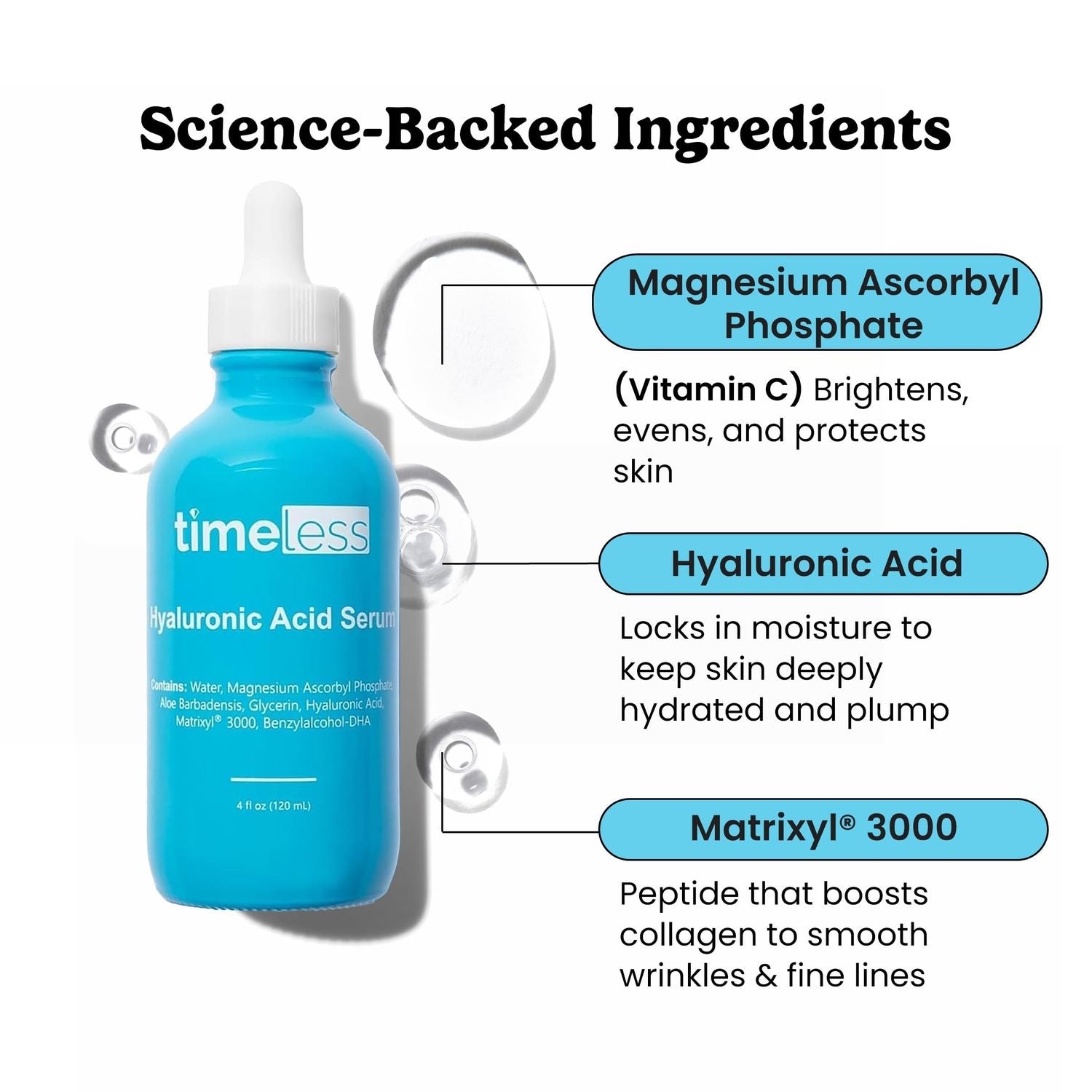 سيروم حمض الهيالورونيك وفيتامين سي من تايملس يعزز ويحافظ على مستويات الترطيب المثالية. ابدأ روتينك اليومي للعناية بالبشرة مع هذا السيروم الأساسي. فيتامين سي بمضادات الأكسدة القوية هو خط الدفاع الأول لبشرتك، فهو يُفتحها ويُنقيها ويحميها. ماتريكسيل 3000 يُعيد بناء الكولاجين ويشد البشرة، بينما يُعزز حمض الهيالورونيك مستويات الرطوبة. سيبدو وجهك مُشرقًا ومُشرقًا، مما يمنحكِ شعورًا بالراحة وكأنكِ نمتِ ليلة كاملة. يُنصح به لجميع أنواع البشرة. يتكون سيروم حمض الهيالورونيك + فيتامين سي من تركيز 5% من فيتامين سي، وتركيز 1% من ماتريكسيل 3000 مع تركيز 1% إضافي من حمض الهيالورونيك. يوفر مزيج حمض الهيالورونيك مع أفضل سيروم فيتامين سي للبشرة الدهنية سيرومًا فائق الترطيب يُفتح البشرة بالفيتامينات الطبيعية والمكونات الأساسية المُضادة للشيخوخة، مع تجديد حجم البشرة وتنعيم الخطوط الدقيقة والتجاعيد. الحجم: 113 مل. الاستخدام: ضعي قطرتين أو ثلاث قطرات على أطراف الأصابع ووزعيها بالتساوي على بشرة نظيفة، ويفضل ليلاً. للاستخدام الخارجي فقط. يُنصح باستخدام واقي الشمس بعد الاستخدام.