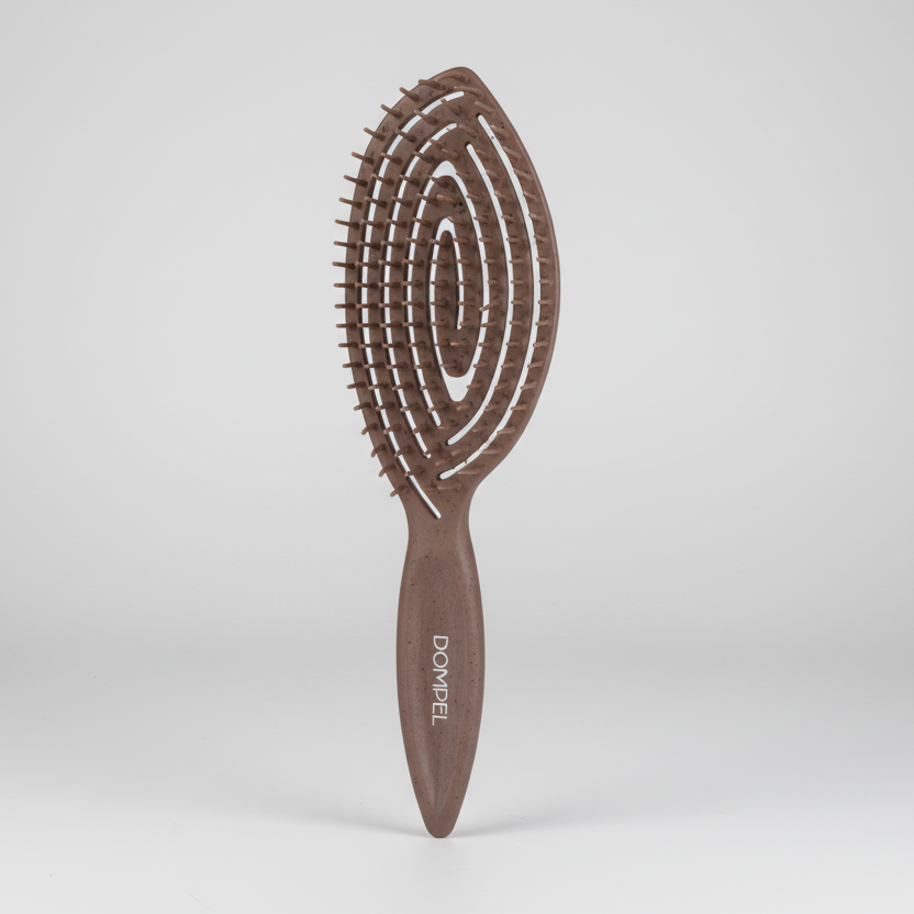 The Dompel Silicon Brush Natural With Coffee Scent/Brown from Malsa is an ergonomically designed hair brush crafted to gently detangle and style your hair. Its bristles glide smoothly through strands, reducing breakage and minimizing discomfort. Ideal for all hair types, it helps distribute natural oils from root to tip for a healthier shine. Durable and easy to handle, it’s perfect for everyday use.