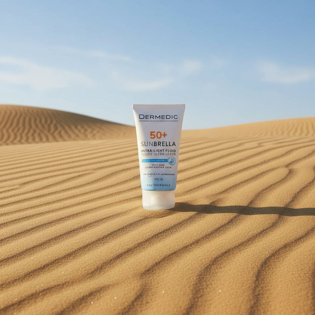 DERMEDIC Sunbrella Oily–Combination Skin SPF 50+ Cream – 50ml, available at MALSA, is a high-protection facial sunscreen specifically formulated for oily and combination skin types. It provides very high broad-spectrum protection against UVA and UVB rays while helping control excess shine for a comfortable, matte-looking finish.
