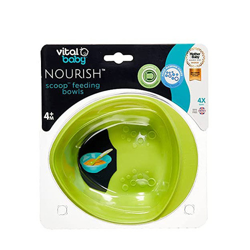 Making meal times stress free and less messy, the Nourish Suction Plate from Vital Baby is designed with a suction pad at the back that presses down on tables and high chair trays to avoid tipping and spillage.